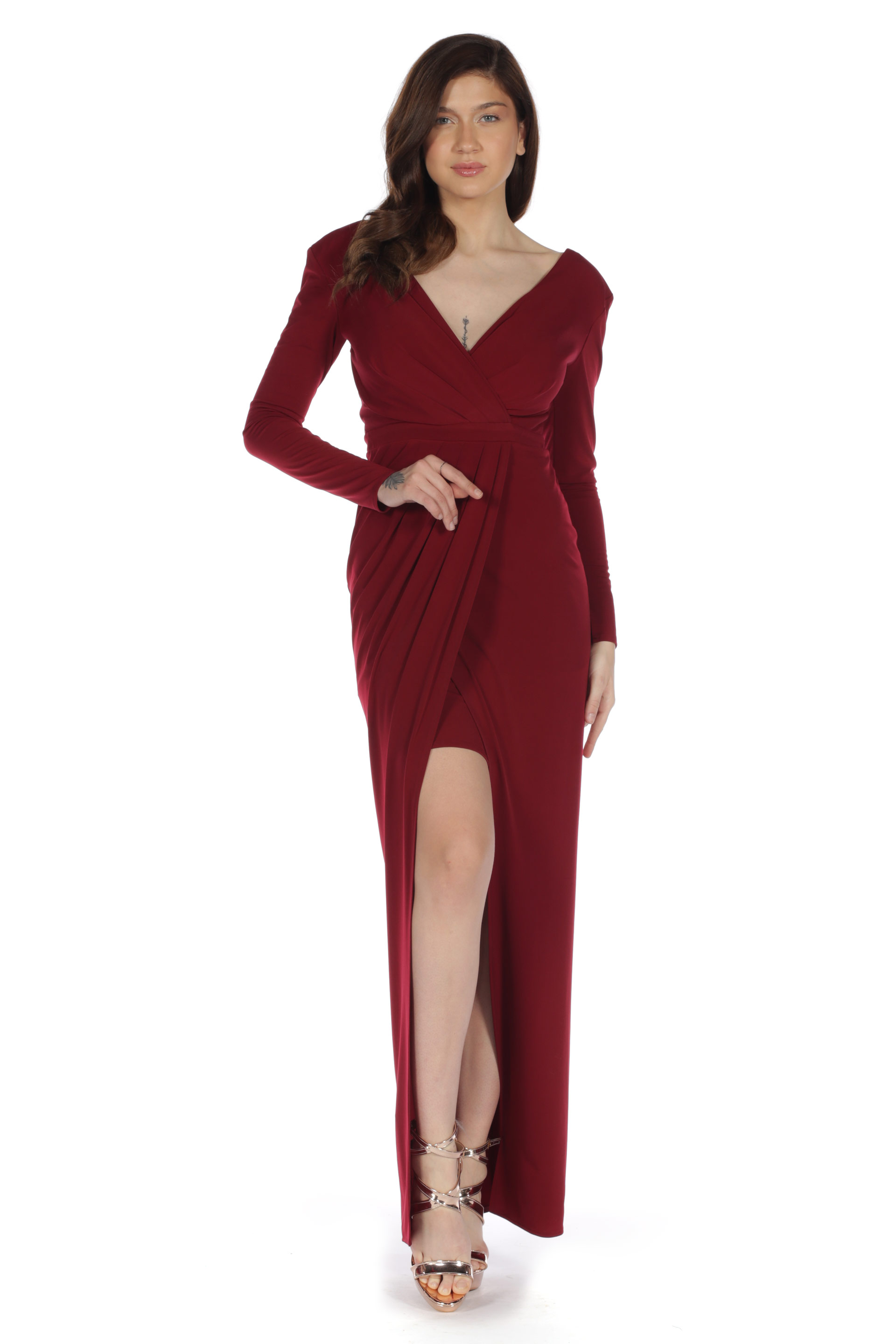 - Kol Boyu Uzun Abiye Elbise