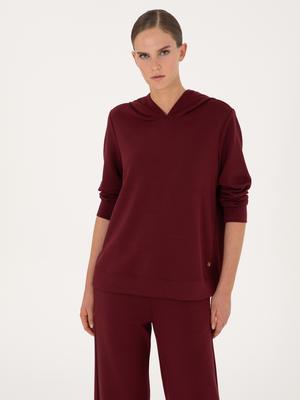 Vişne Oversize Modal Karışımlı Kapüşonlu Sweatshirt