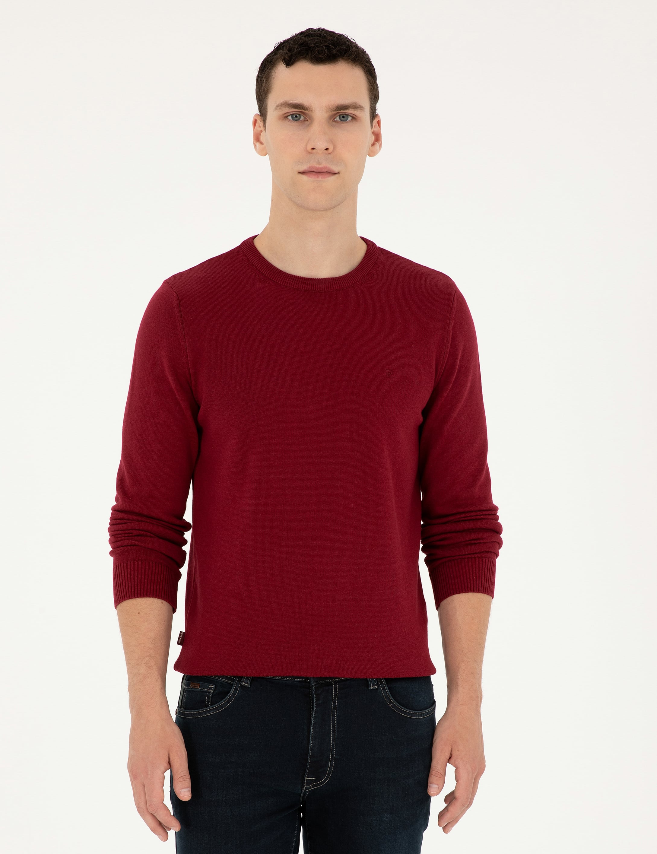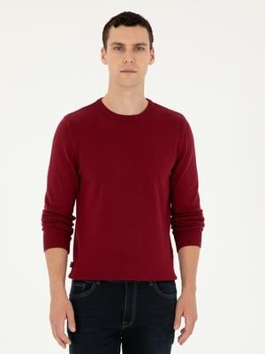 Vişne Slim Fit Bisiklet Yaka Basic Triko Kazak