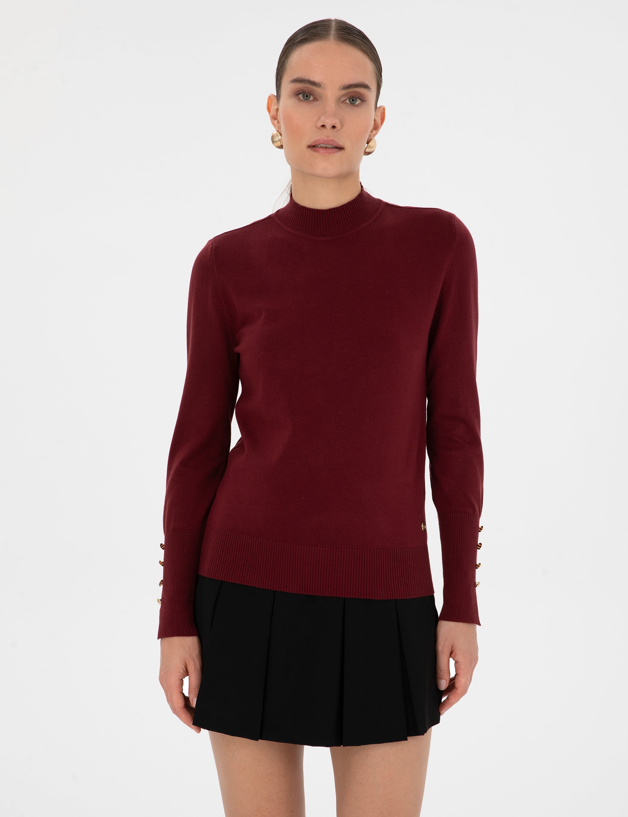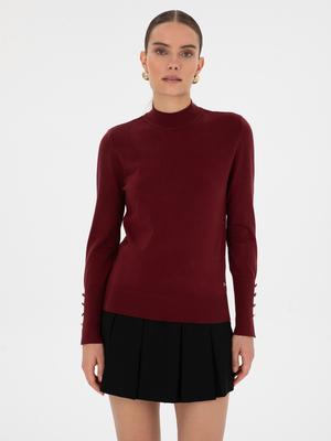 Vişne Slim Fit Yarım Balıkçı Basic Kazak