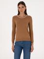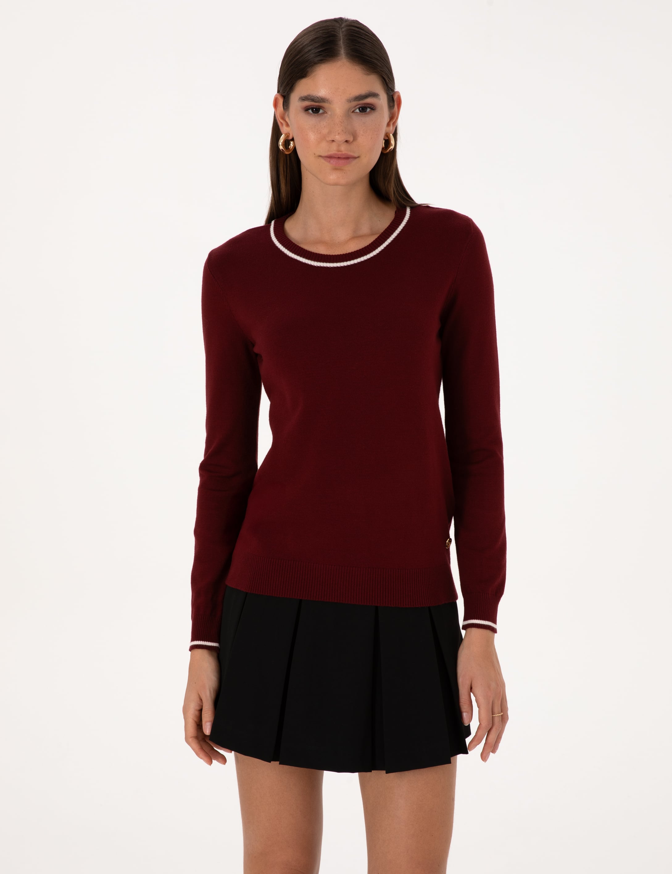 - Vişne Slim Fit Çizgi Detaylı Basic Kazak