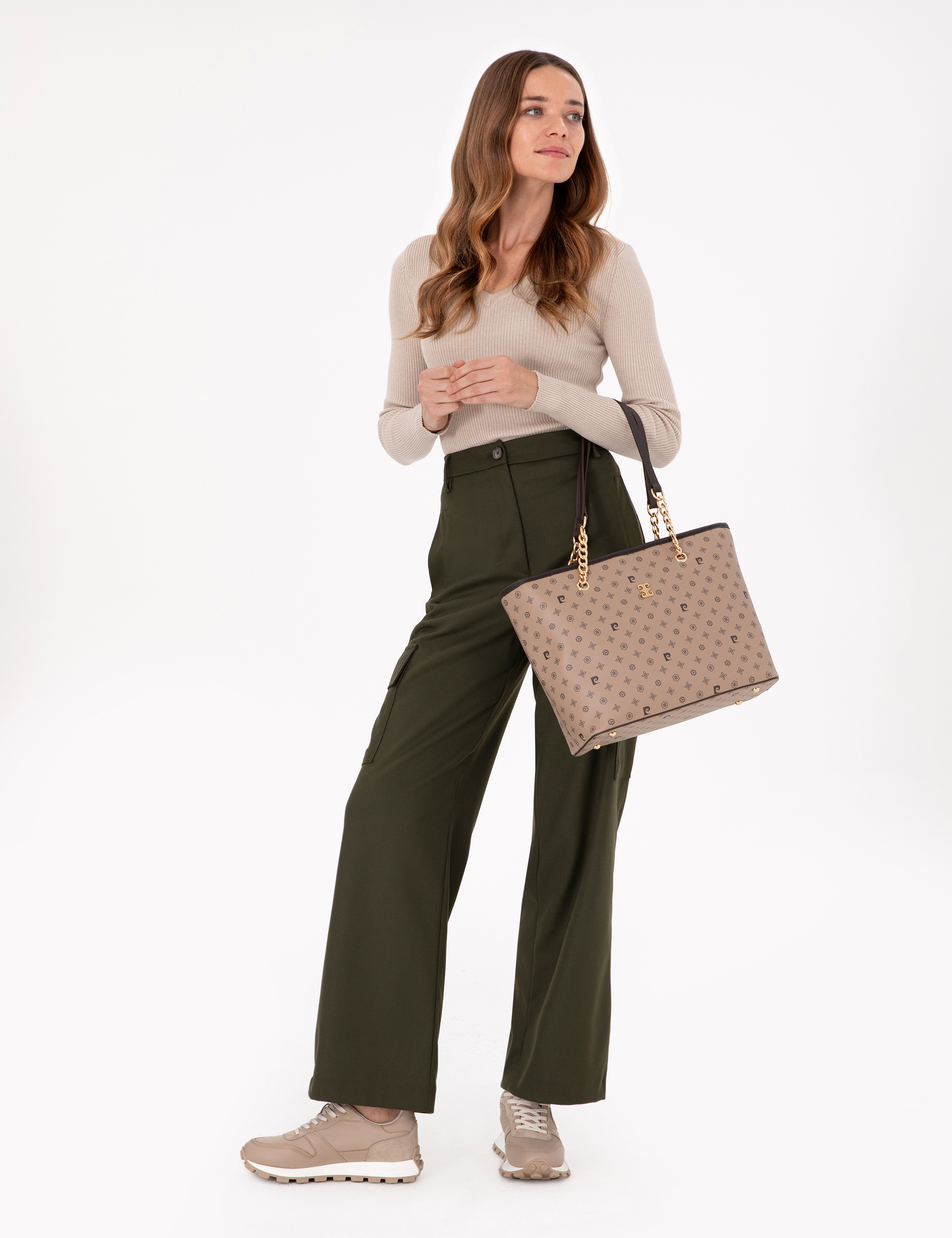 Zincir detaylı askı mevcuttur.; Genişlik x Yükseklik x Derinlik: 38x27x14 cm'dir.; Fermuarlı kapama özelliğine sahiptir.; İçerisinde fermuarlı orta bölme mevcuttur.; 1 adet fermuarlı iç cep bulunmaktadır.; Telefon vb. eşyaları koymak için 1 adet fermuarsız iç cep bulunmaktadır.; Suni deri malzemeden üretilmiştir.; Pierre Cardin yazılı özel saklama kılıfı çanta içerisinde mevcuttur.; 2 yıl garantilidir.; Türkiye'de üretilmiştir.