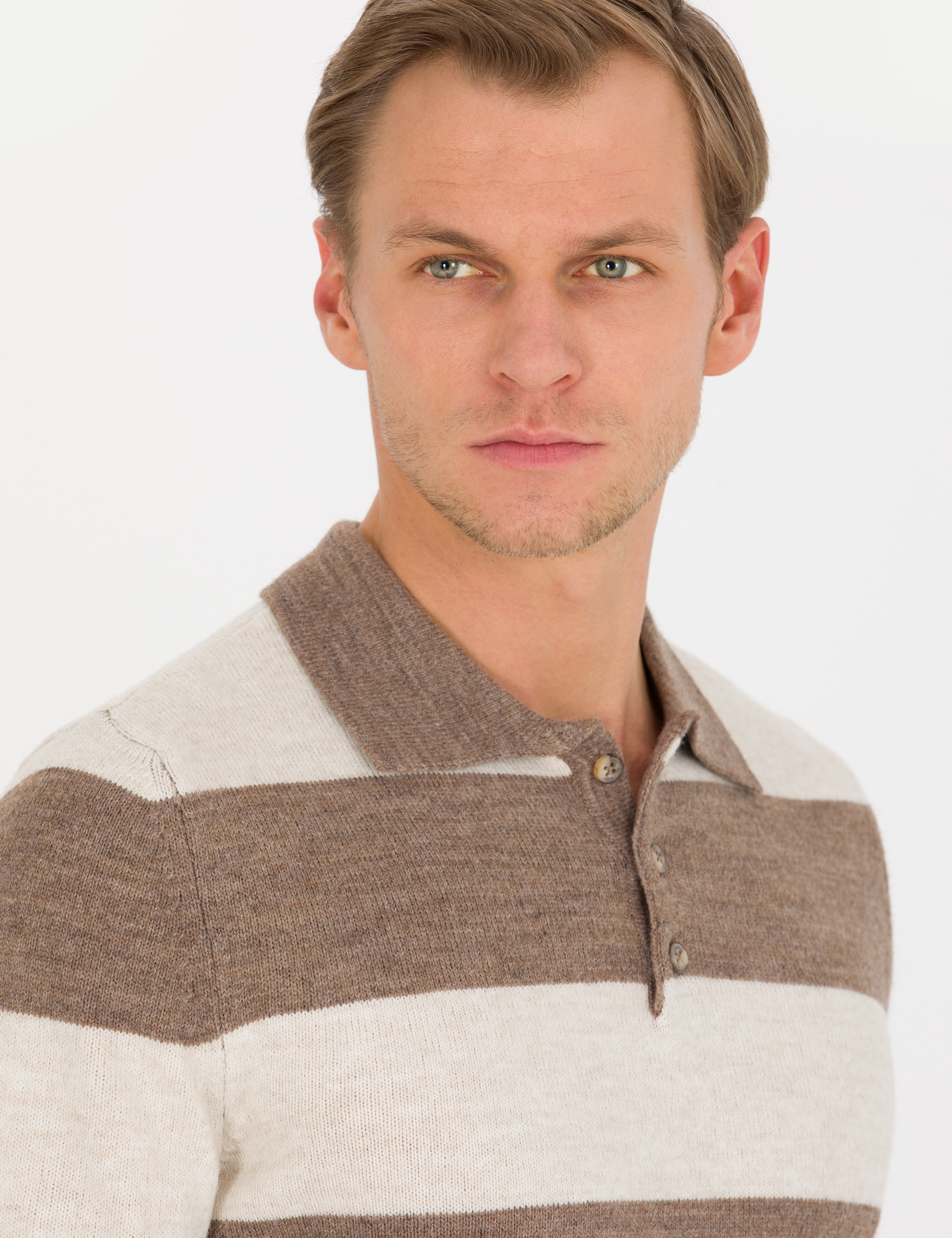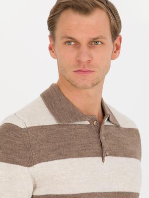 Vizon Melanj Slim Fit Düğmeli Polo Yaka Triko Kazak