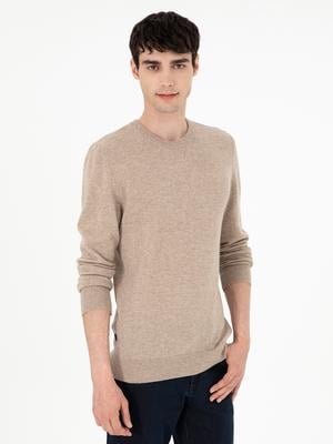 Vizon Melanj Slim Fit Bisiklet Yaka Kaşmir Triko Kazak
