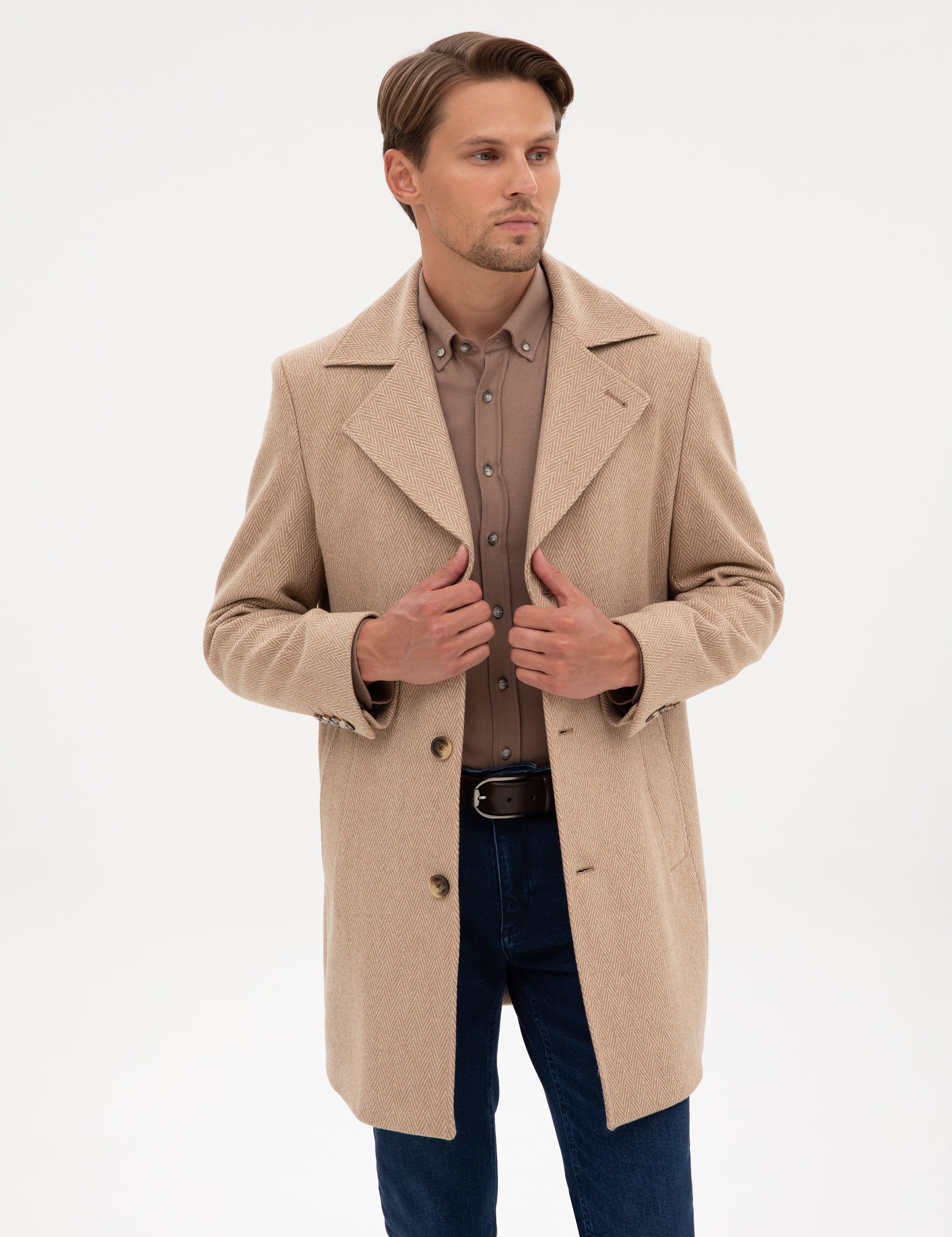 Kahverengi Yün Karışımlı Balıksırtı Palto