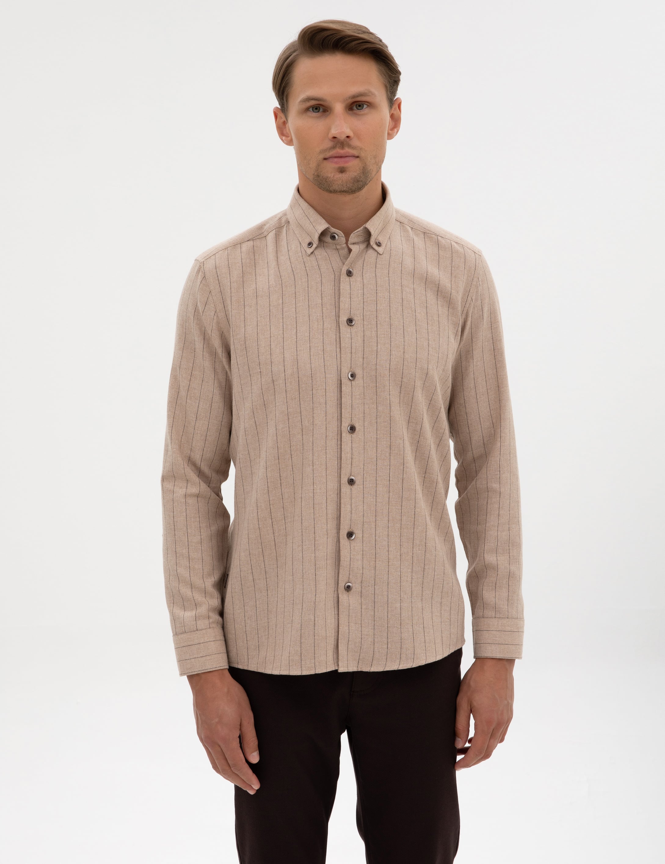 Vizon Çizgili Regular Fit Uzun Kollu Gömlek