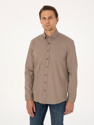 %100 pamuklu kumaşıyla cildinizin nefes almasını sağlayan bu vizon uzun kollu gömlek, gün boyu konforlu bir kullanım sunar. Düz dokusu ile sade ve zarif bir görünüm kazandırırken, regular fit kalıbı rahat bir duruş sağlar. Düğmeli yaka detayıyla klasik tarza modern bir dokunuş yapan bu gömlek, hem ofis kombinlerinde hem de günlük şıklıkta gardırobunuzun kurtarıcı parçalarından biri olur.
