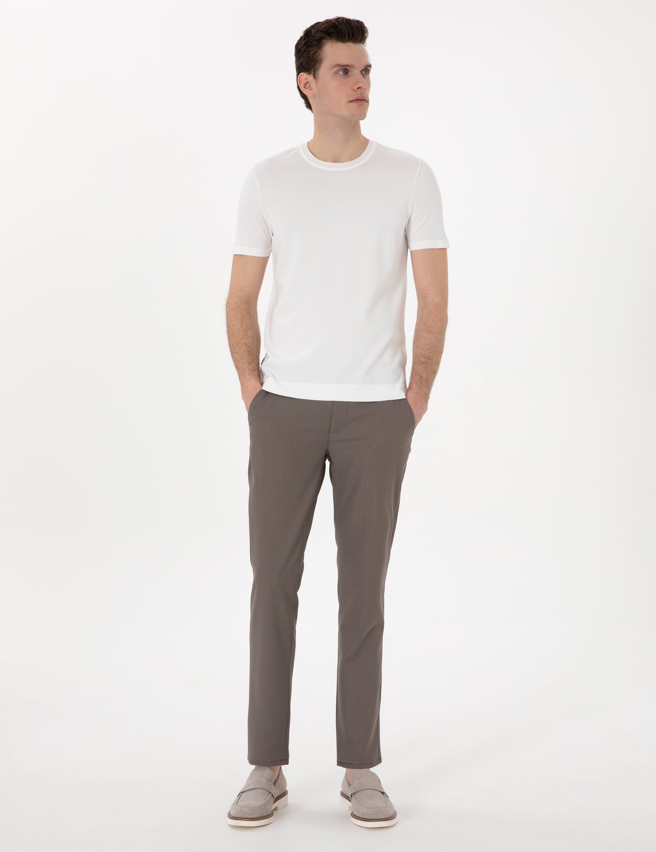 Pierre Cardin Koyu Bej Slim Fit Kanvas Pantolon, şıklığını ve rahatlığını her an korumak isteyen erkekler için tasarlandı. Yüksek kaliteli kanvas kumaşı ve slim fit kesimi sayesinde vücuda mükemmel şekilde uyum sağlayan bu pantolon, lastikli bel detayıyla ekstra konfor sunar. Koyu bej rengin sunduğu doğal ve zarif görünüm sayesinde, hem günlük kombinlerde hem de iş ortamlarında rahatça tercih edebilirsiniz. Açık mavi veya beyaz gömlek, lacivert blazer ceket ve kahverengi klasik deri ayakkabılarla smart-casual tarzınızı yansıtabilir; basic tişört ve sneaker ile sportif ve modern bir kombin yaratabilirsiniz. Pierre Cardin Koyu Bej Slim Fit Kanvas Pantolon ile tarzınız her zaman rahat ve şık!