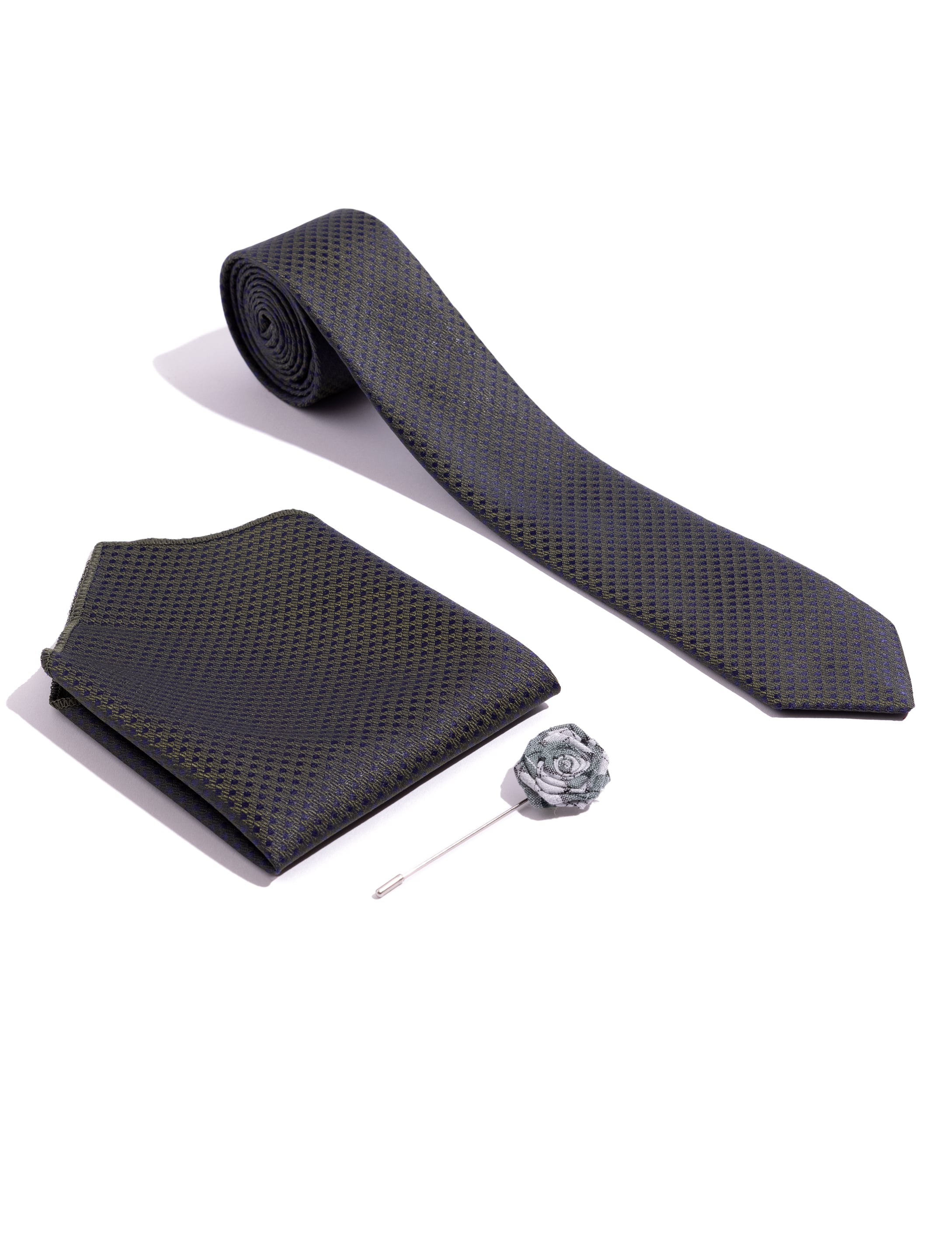 - Yeşil 3'lü Kravat-Mendil-Kravat İğnesi Set