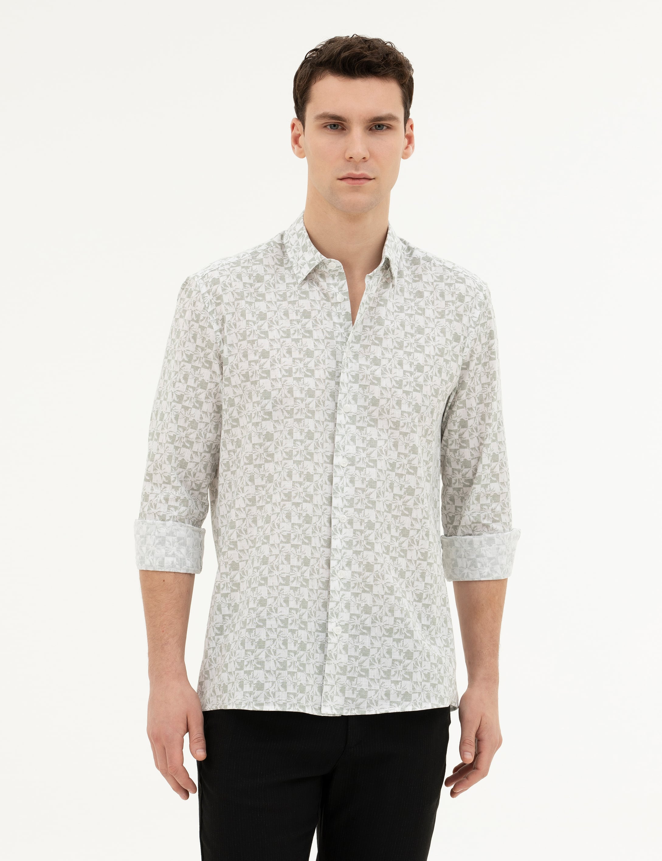 Yeşil Regular Fit Uzun Kollu Gömlek