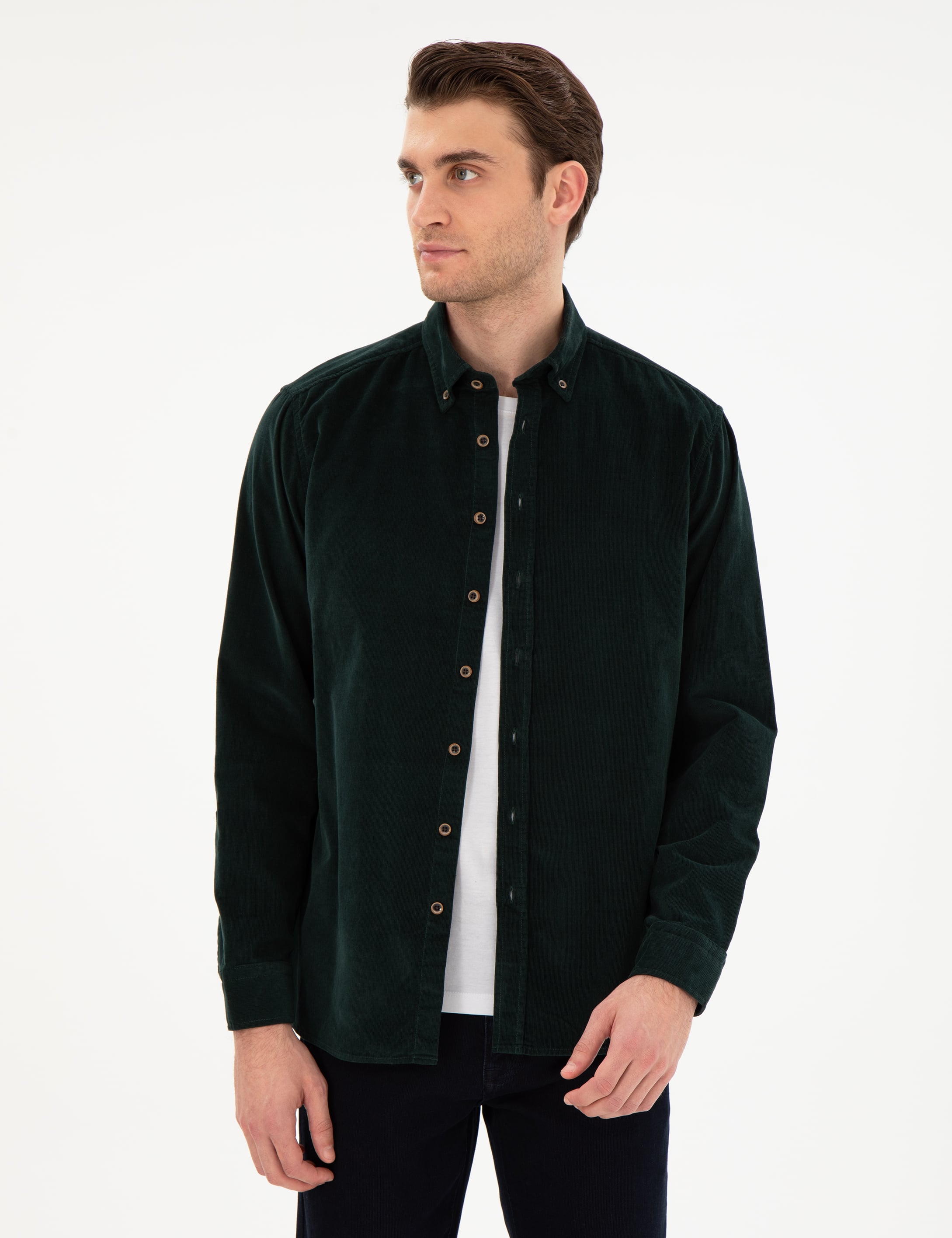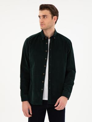 - Yeşil Regular Fit Uzun Kollu Gömlek