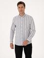 Yeşil Regular Fit Çizgili Uzun Kollu Gömlek