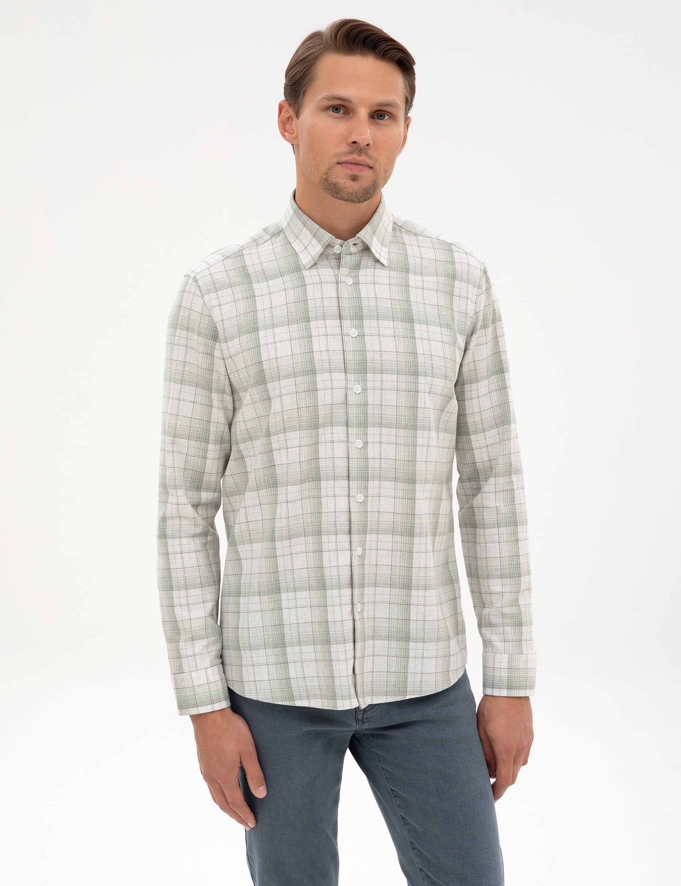 - Yeşil Ekose Regular Fit Uzun Kollu Gömlek