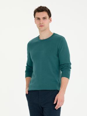 Yeşil Slim Fit Bisiklet Yaka Basic Triko Kazak