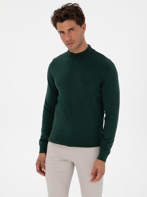 Yeşil Slim Fit Yarım Balıkçı Yaka Basic Triko Kazak