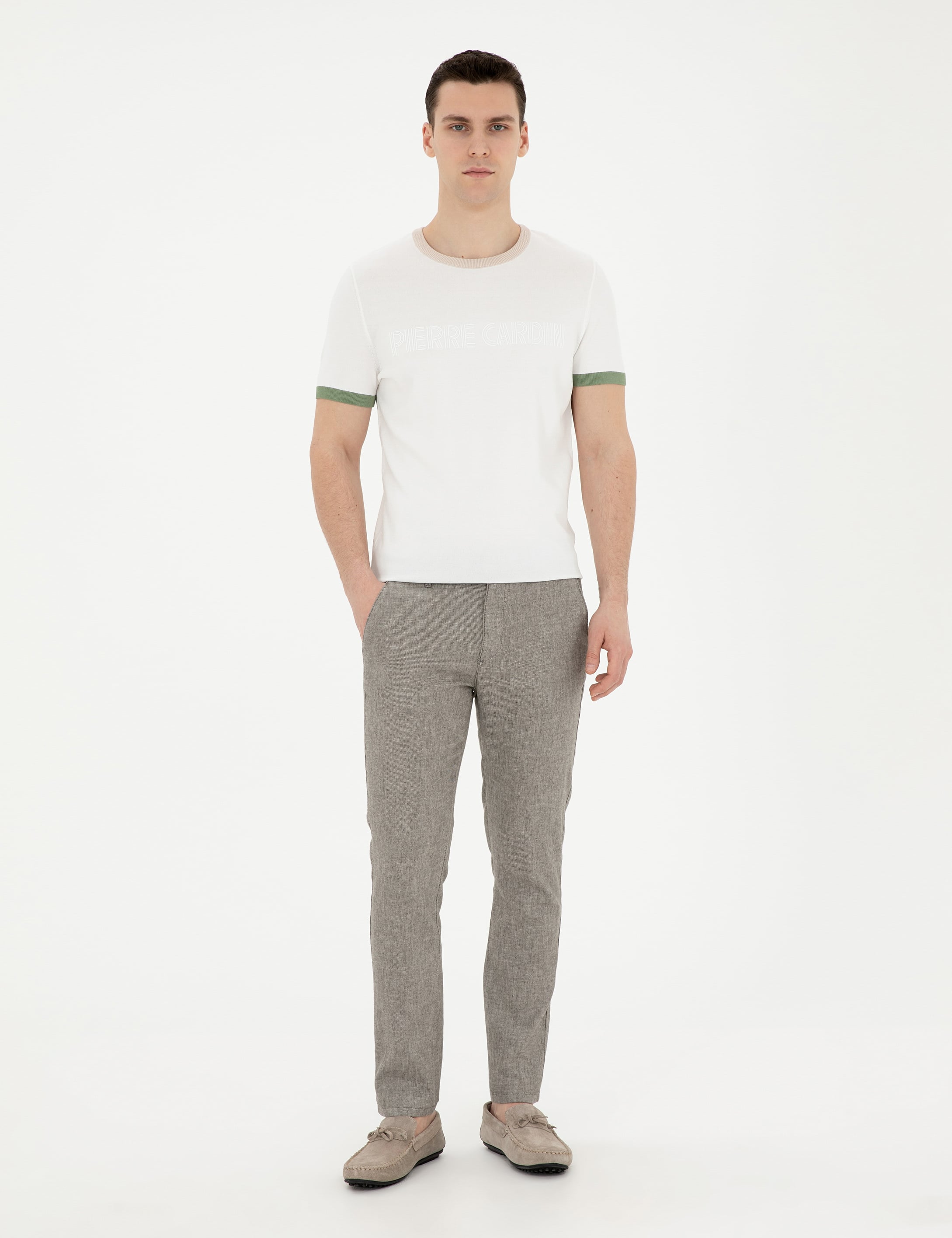 Yeşil Slim Fit Keten Karışımlı Kanvas Pantolon