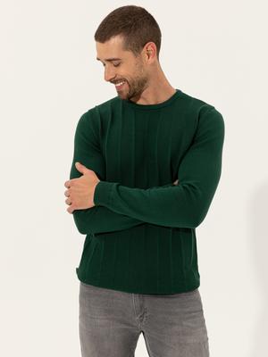 - Yeşil Slim Fit Bisiklet Yaka Triko Kazak