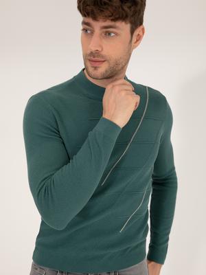Yeşil Slim Fit Bisiklet Yaka Triko Kazak