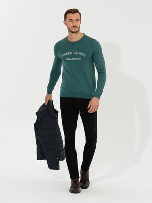 - Yeşil Slim Fit Bisiklet Yaka Triko Kazak