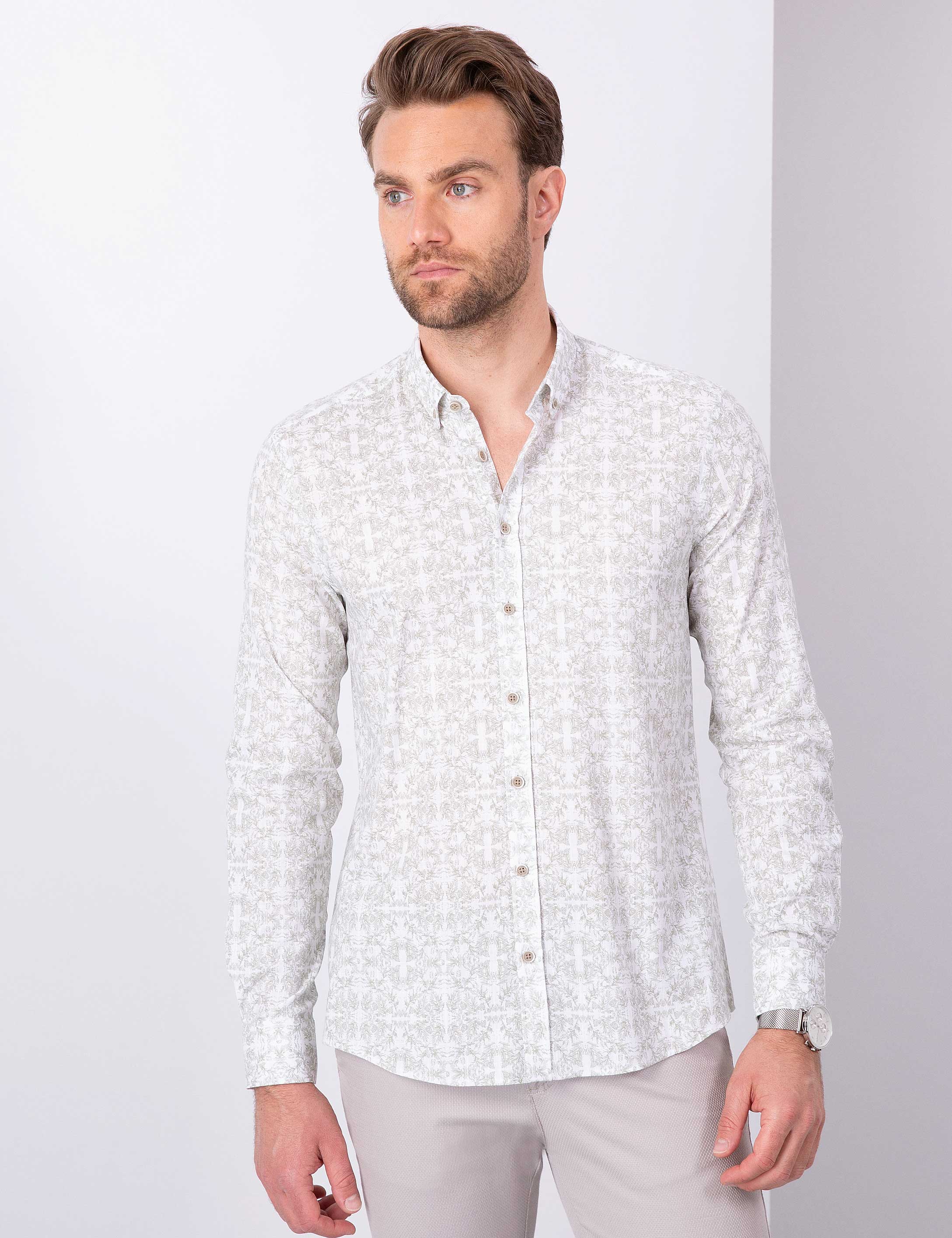 - Yeşil Slim Fit Uzun Kollu Gömlek