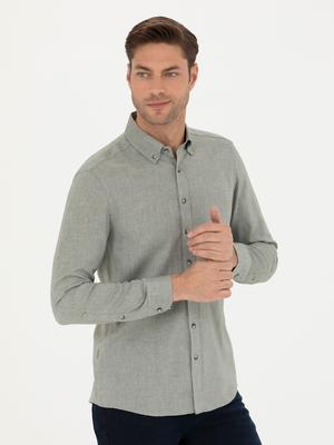 Yeşil Slim Fit Uzun Kollu Gömlek