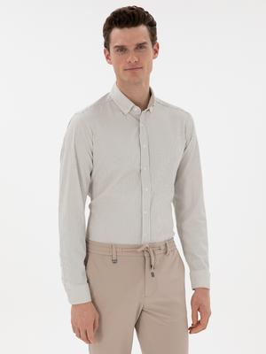 Çağla Slim Fit Çizgili Uzun Kollu Gömlek
